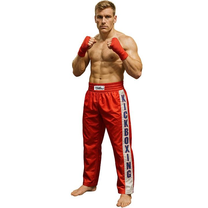 FIGHT-FIT - Pantaloni da Kickboxing / Raso / Rosso
