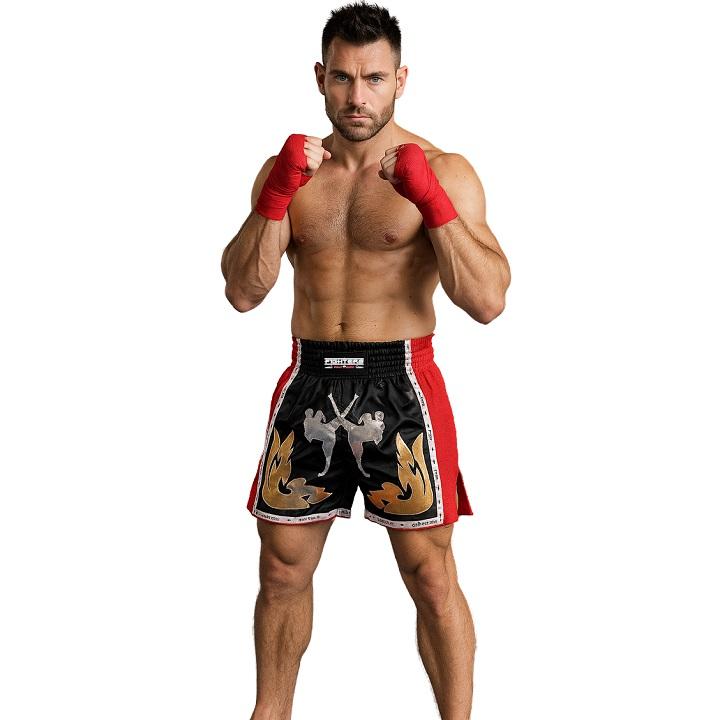Il boxer tailandese consiste semplicemente in un paio di pantaloncini. Gli stinchi Shin non sono obbligatori. I pantaloncini thailandesi sono solitamente più corti dei boxer e sono separati, quindi esegui calci veloci, alti e potenti senza interferenze. Sono anche dotati di un colletto spesso da 3 o 4 pollici, che può essere fissato con un cavo pesante. I pantaloncini thailandesi sono realizzati con materiali diversi, ovvero nylon, poliestere e raso. I più economici sono realizzati in nylon ma sono di qualità inferiore. I pantaloncini in raso sono morbidi, elastici e di buona qualità. I pantaloncini in raso sono i pantaloncini più preferiti tra i combattenti. I poliestere sono quasi simili per qualità al raso ma sono più leggeri.